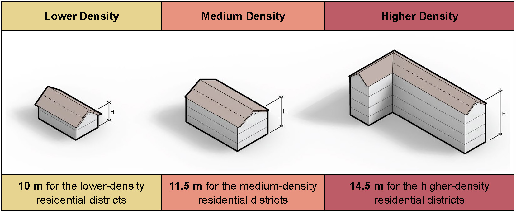 Increase Height Allowances – This proposed change would increase the allotted height for each district to allow more space for housing. Currently, maximum residential building height varies between 8 metres and 11.5 metres depending on district (measured from the ground to the middle of a building’s roof). The proposed changes would allow: