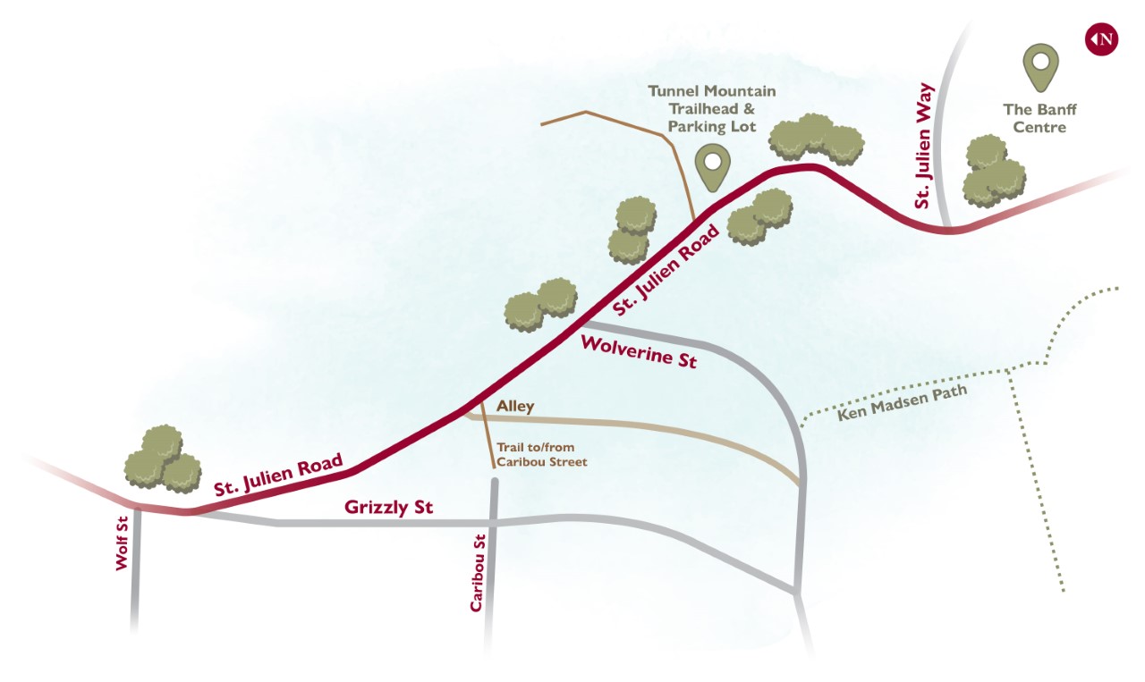 The Town of Banff reconstructed and enhanced St. Julien Road between Wolf Street and St. Julien Way in 2022, fully reopened in 2023. Learn more about the complete St. Julien Road Project.